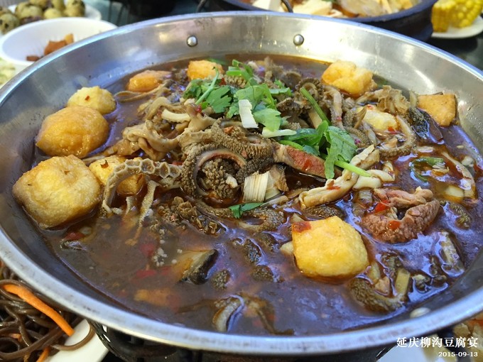 简单吃了点儿,我们就启程回家了。沿途一路说说笑笑,不自觉的四个人又聊到了吃,正好路过延庆,于是我提议带他们来柳沟尝尝当地的豆腐宴。