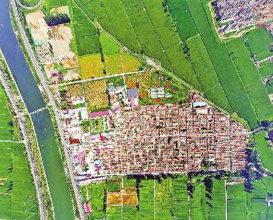 绿树繁花萦绕在房前屋后,怒放的金花葵映衬着红砖瓦房,共同构成了王安房村的别致风景。