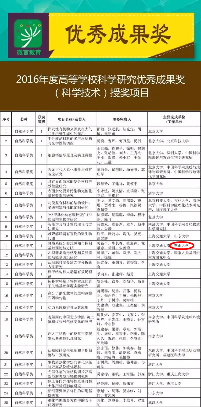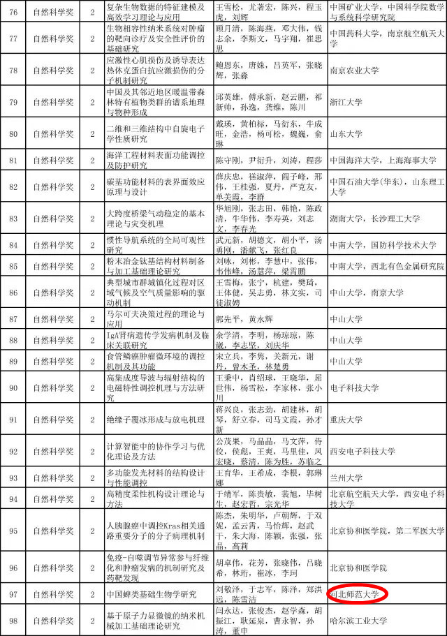 河北省三所高校榜上有名。其中,燕山大学关新平教授等与上海交通大学合作完成的 " 网络系统分布式感知与控制基础理论与方法 ",获得自然科学奖一等奖;河北师范大学刘敬泽教授等人完成的 " 中国蜱类基础生物学研究 ",获得自然科学奖二等奖;河北农业大学参与研究的 " 新耕作制度下玉米主要病虫害发生规律与绿色防控关键技术 ",获得科技进步奖一等奖。