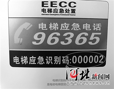 “像这样的标示牌,今后将在全市每一部电梯内悬挂,把信息数据汇总到专门的系统平台,相当于每部电梯配了一张身份证。”石家庄市特种设备技术检查中心主任刘彦平表示,标示牌上的每个识别码对应一台电梯,今后市民若在乘坐电梯的过程中,遇到被困电梯或出现电梯故障,可直接拨打电梯应急救援电话96365,报出所在电梯识别码,平台指挥中心即可迅速锁定电梯位置,立即调动救援力量实现快速有效救援。