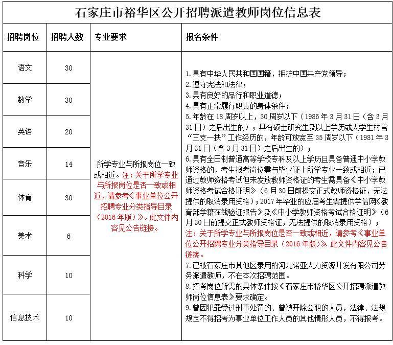 8.招考岗位所需的具体条件按《石家庄市裕华区公开招聘派遣教师岗位信息表》要求确定。