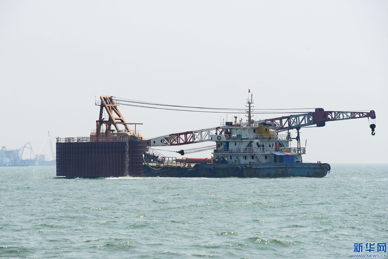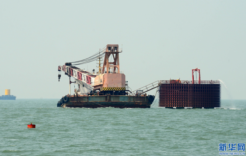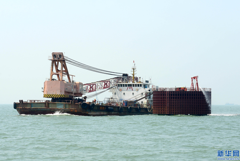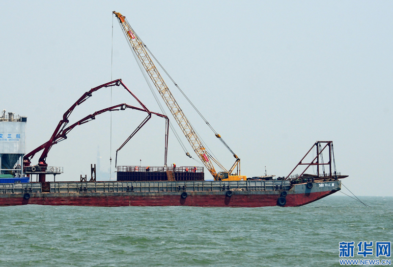 这是乐亭菩提岛海上风电场项目施工现场(5月27日摄)。 近日,河北乐亭菩提岛海上风电场主体工程在河北省乐亭县海域加紧施工。据介绍,该项目由河北建投海上风电有限公司投资兴建,装机总容量300兆瓦,选用75台4兆瓦海上风电机组,预计2018年底并网发电。 新华社记者 杨世尧 摄