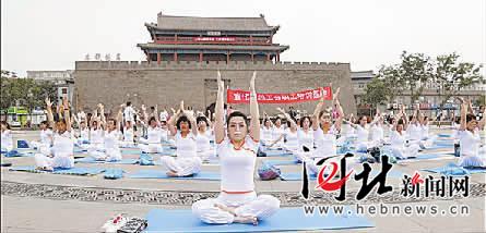 宣化区总工会职工培训基地瑜伽队的70名队员参加了拱极楼瑜伽演练活动。 图文:赵振岱