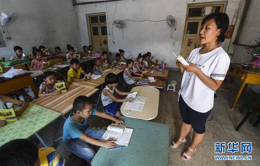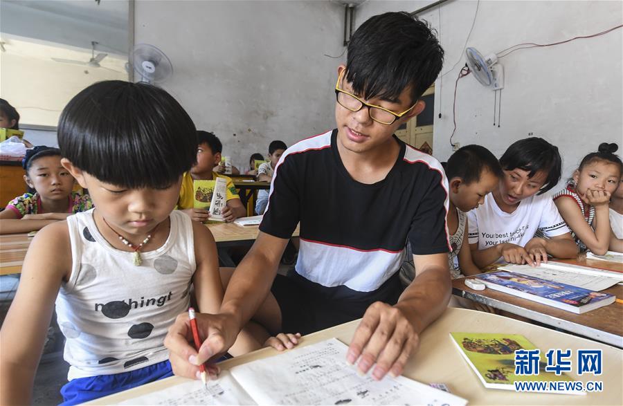7月17日,受助大学生在“爱心课堂”上为贫困儿童和留守儿童授课。