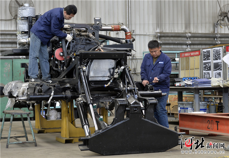 3月30日,河钢集团宣工公司工人正在调试组装大马力压雪车。