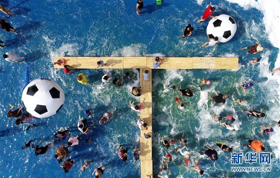7月23日,在河北省唐山市丰润区一家幼儿园,小朋友和家长在亲子活动中戏水。大暑时节,人们用各种方式消暑纳凉,乐享清爽夏日。 新华社发(董钧 摄)