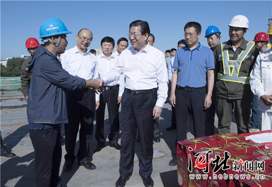 9月23日上午,省委书记、省人大常委会主任王东峰,省委副书记、省长许勤在石家庄看望慰问节日期间坚守岗位的建设者和养护院老人。这是王东峰、许勤在石家庄市中华大街南延工程施工现场看望慰问一线建设者。 记者赵威摄