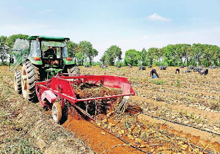 9月17日,机械设备、人工在察北管理区马铃薯种植基地收获马铃薯。