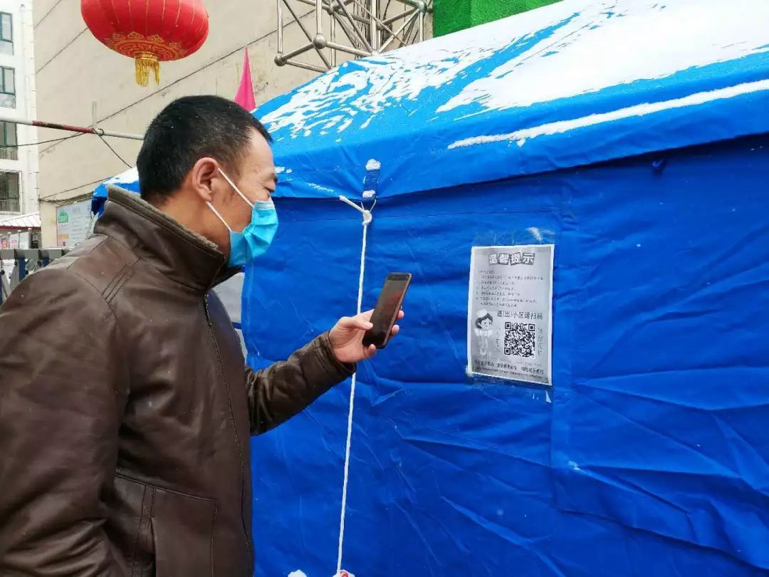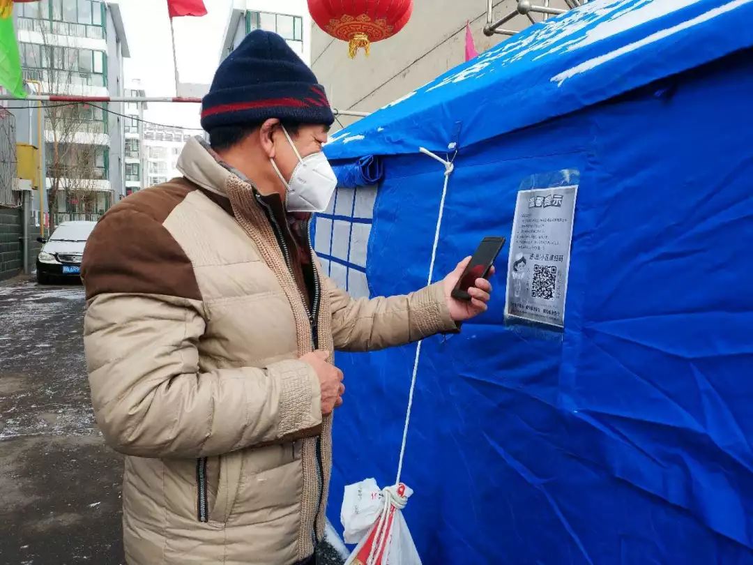 近日,由于天气寒冷,居民登记出入信息的过程比较困难。通过手机扫描二维码,居民可以用手机直接登记,不仅给群众带来了便利,也使防疫工作队的工作效率得到了极大的提高。